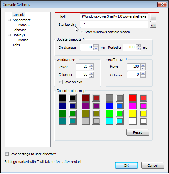 2. ในส่วนการตั้งค่า Console ให้ดูที่ช่อง Shell: